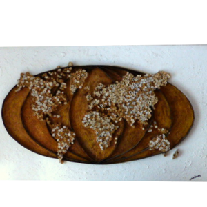 Ces œuvres de grandes tailles sur différents supports , issues du recyclage pour la plupart, témoignent de l’attachement d’Anthéa pour le papier sous toutes ses formes. Certains tableaux sont composés de livres pliés comme : “Afrika” , “Mick’ech” ou encore “la Mappemonde”,” le Train de la vie” , “Pure géométrie” et “le Dahu” .