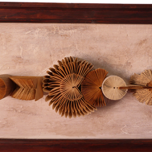 Ce tableau design représente notre existence qui se compose d’une multitudes d'événements symbolisés par les engrenages. Les vies s'imbriquent et se superposent. Ce mouvement perpétuel est donné ici par des pignons et des engrenages en fer. Ce mélange de subtils pliages de livres et de fer symbolisent la légèreté et le massif, le yin et le yang, alors que ces…